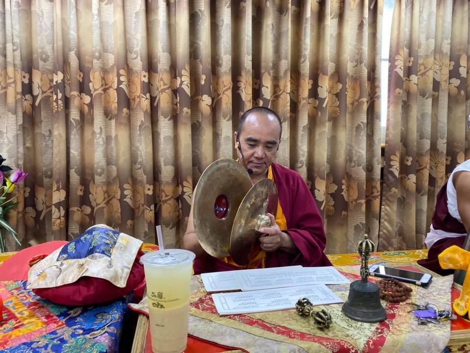仁謙喇嘛帶領師兄大德由法衣穿著、鈴杵使用、手印供養一步一步的教授